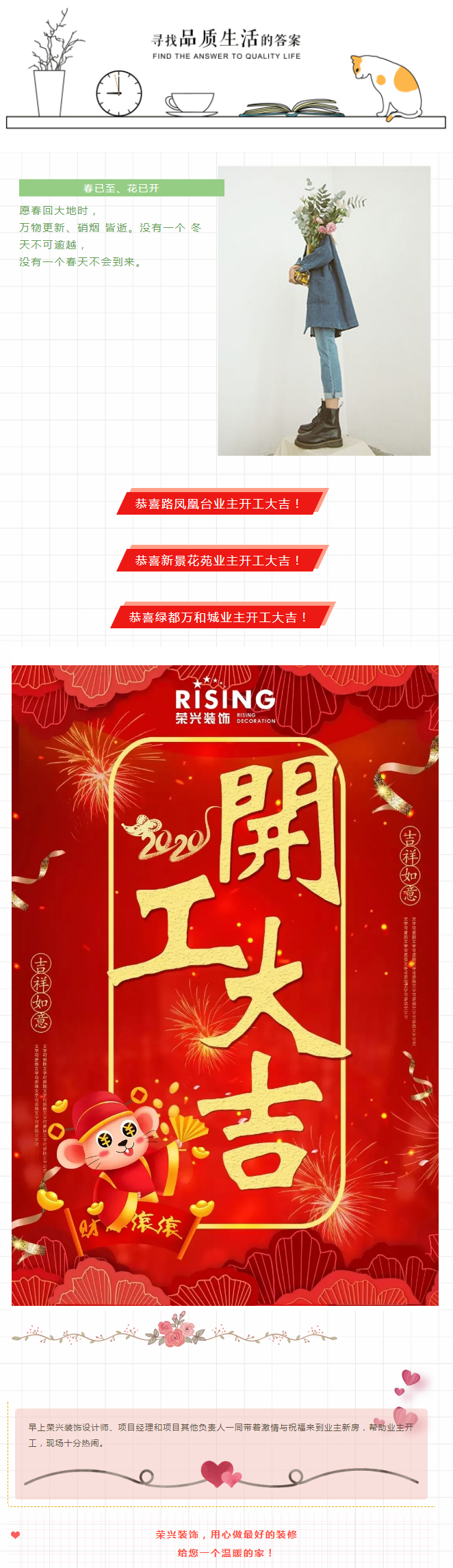 喜报 | 4月的起初三家开工,恭喜荣兴装饰-业主开工大吉! 常州装修找荣兴装饰